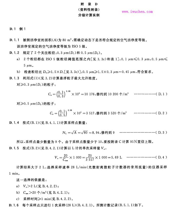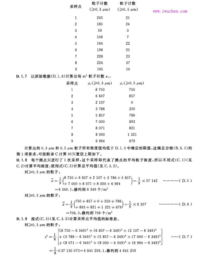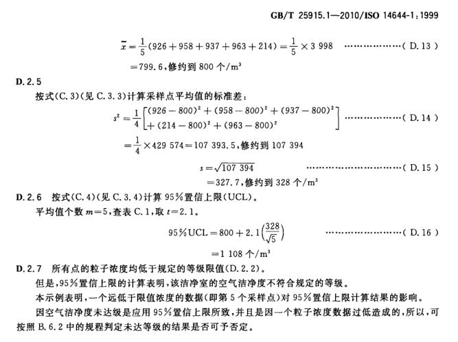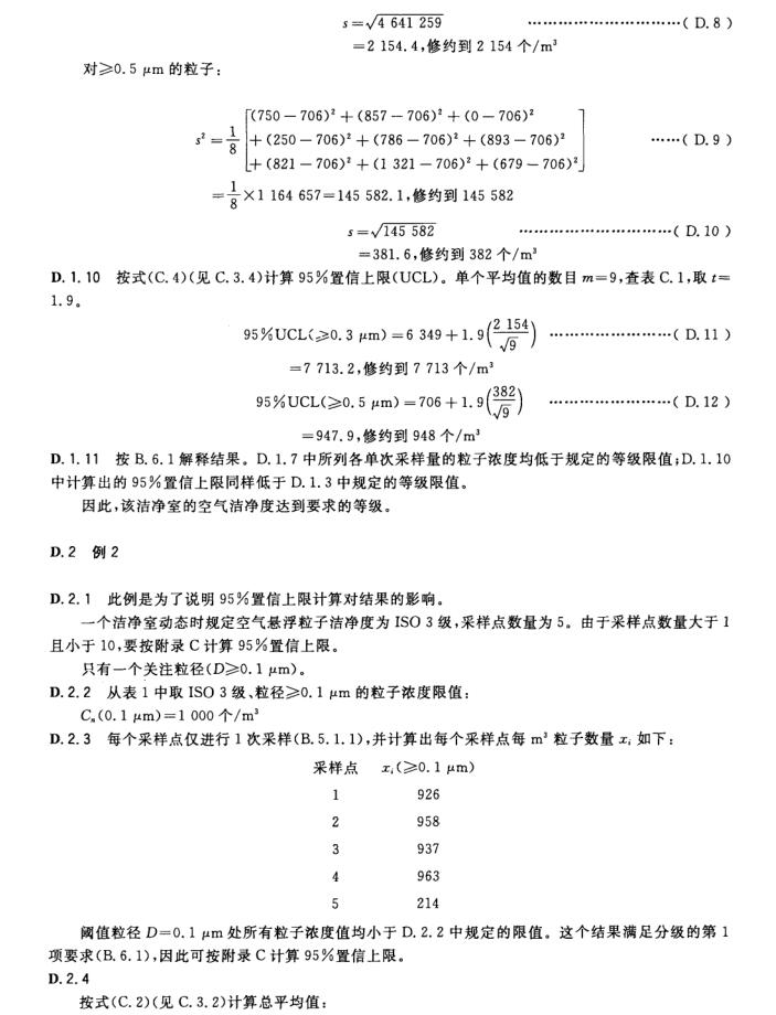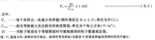 若每個(gè)采樣點(diǎn)測(cè)得的粒子濃度平均值 ,以及適用時(shí)按 B. 5. 2 計(jì)算的 95 % 置信上限,均未超過(guò)按 3. 2