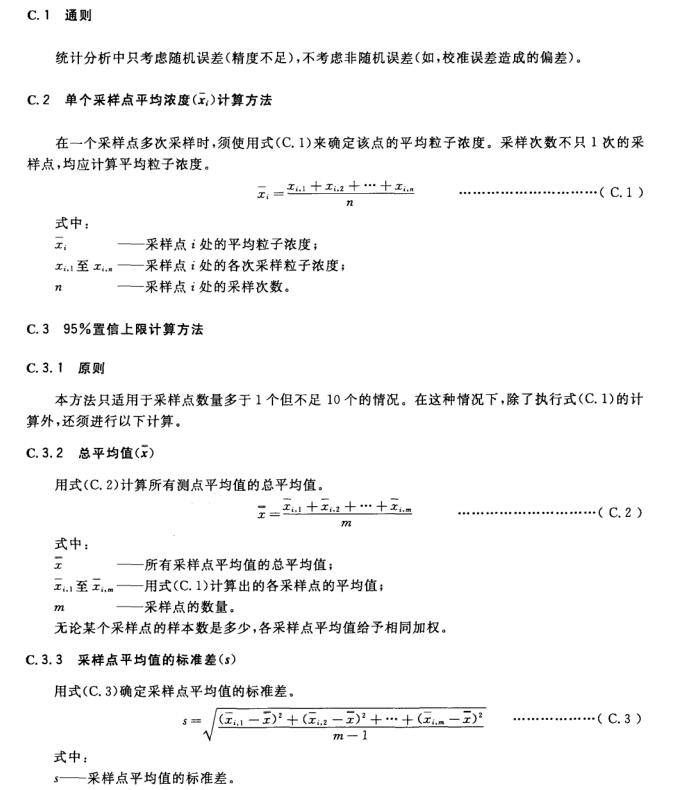 按 4. 2 完成檢測(cè)后,按附錄 C 中的公式計(jì)算粒子平均濃度和 95 % 置信上限(適用時(shí)) 。